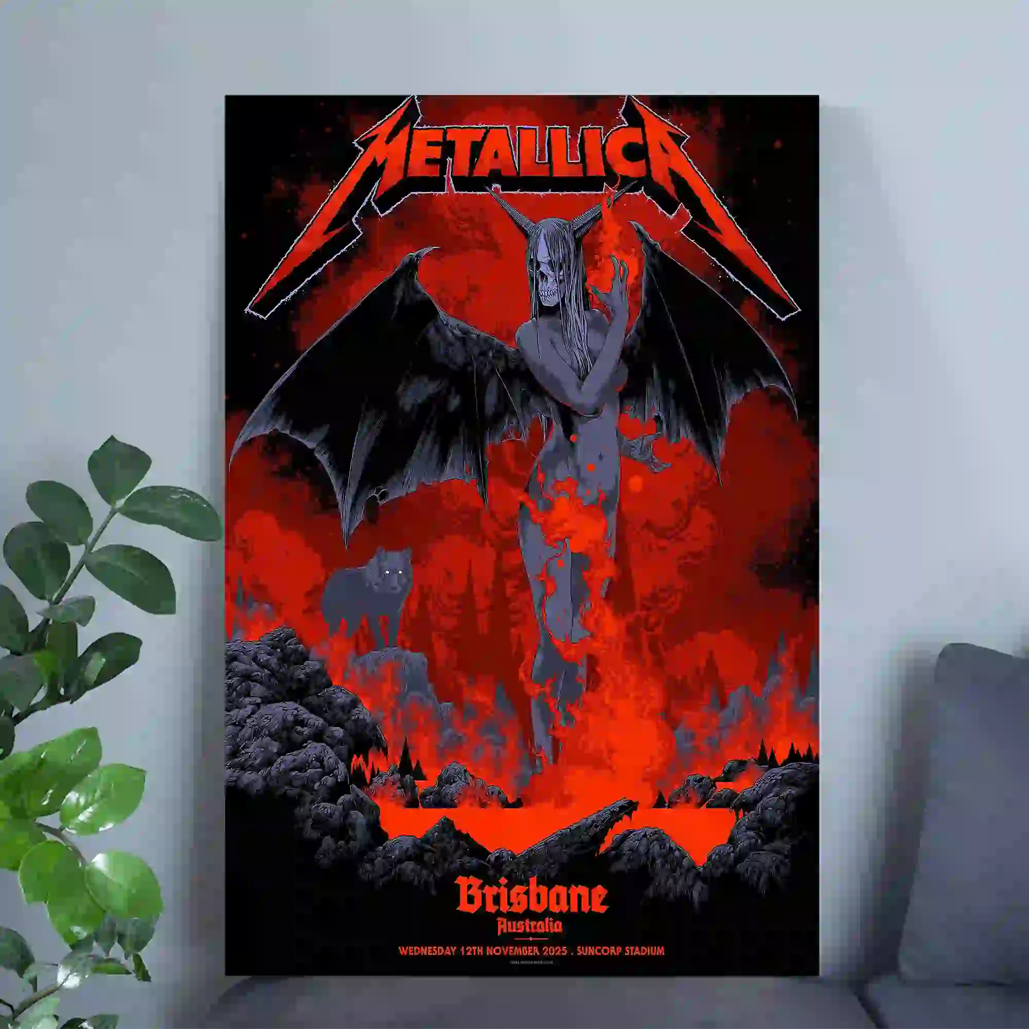 Metallica Brisbane Concert Poster Australia 2025 by Ken Taylor Tour, Suncorp Stadium (Nov 12)