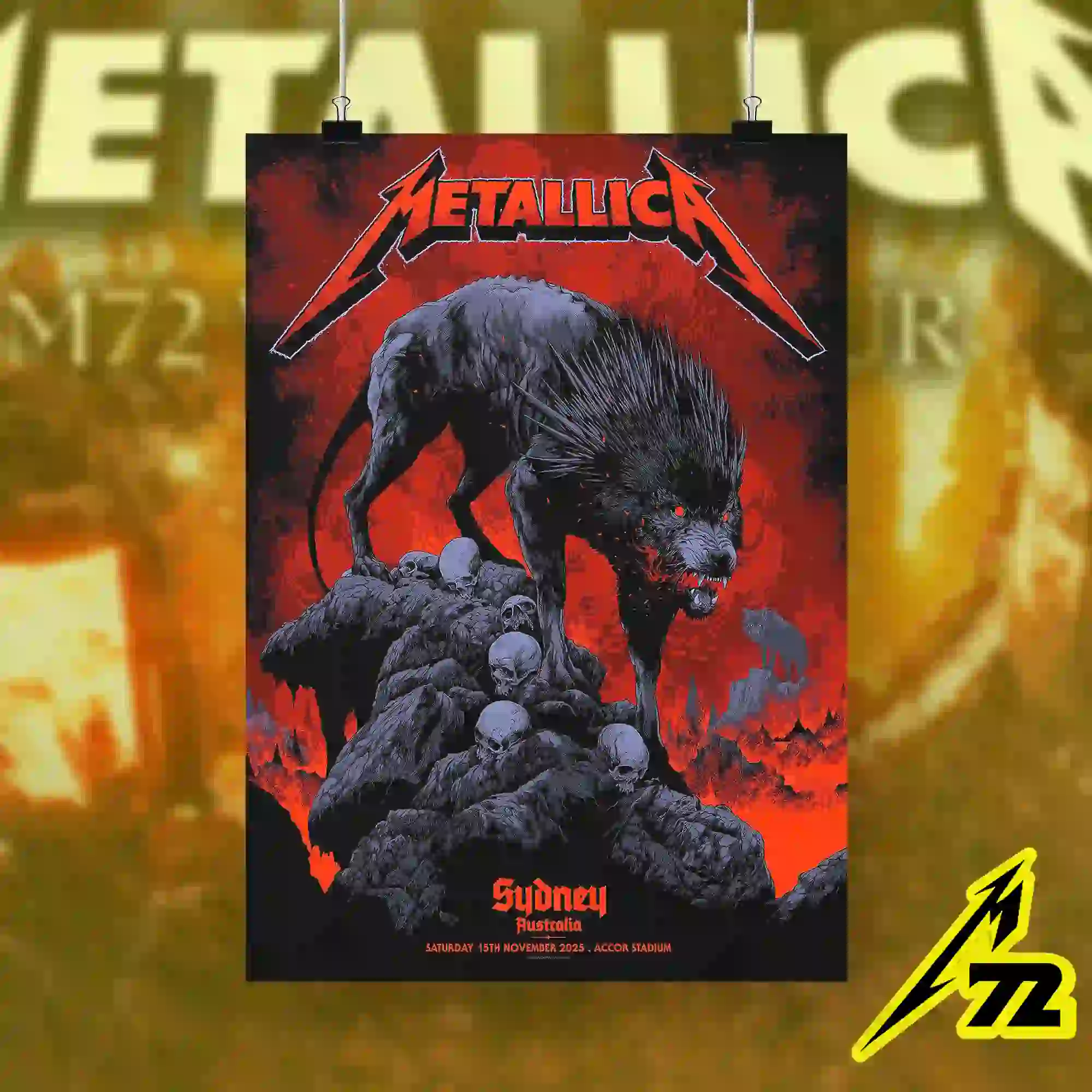 Metallica M72 Sydney 2025 Canvas Poster – Ken Taylor Exclusive Tour Artwork, Accor Stadium (Nov 15)