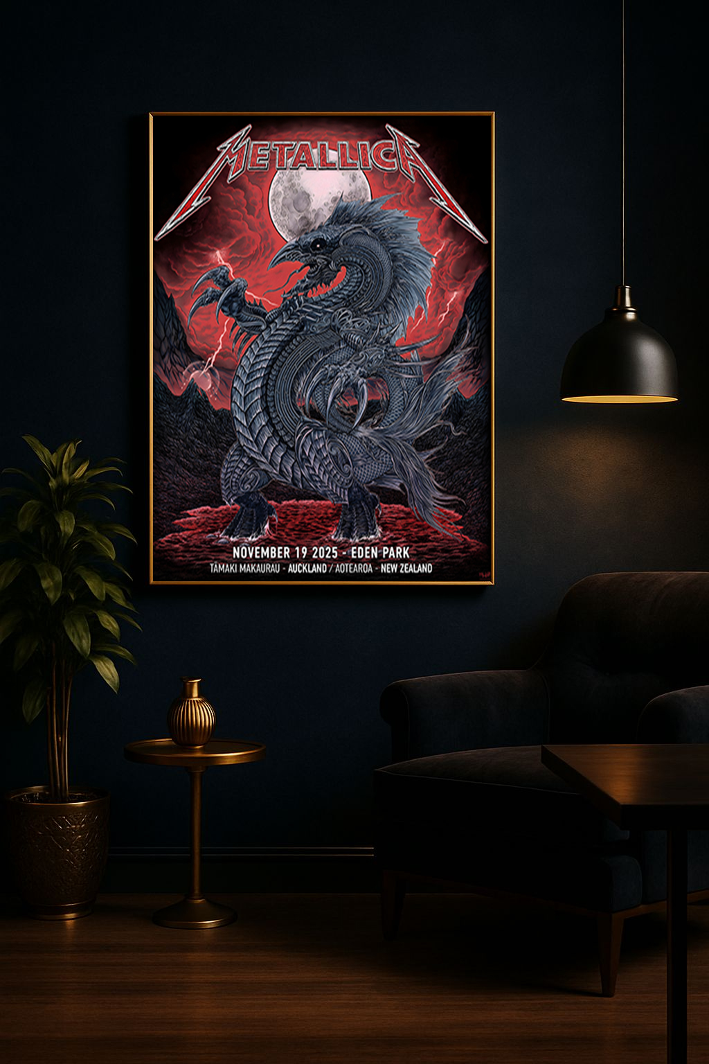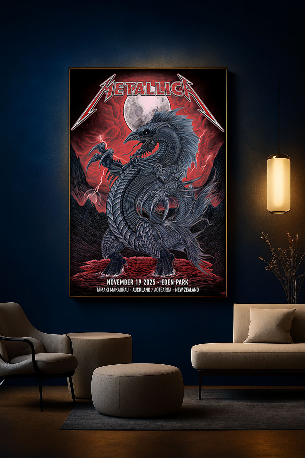 Immerse yourself in the electrifying world of Metallica with this stunning concert poster, commemorating their highly anticipated performance on November 19, 2025, at Eden Park, Auckland.